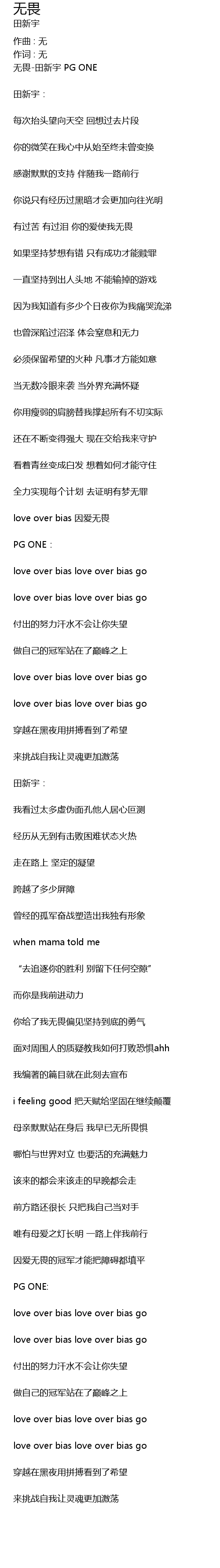 | 无畏-田新宇 PG ONE | |