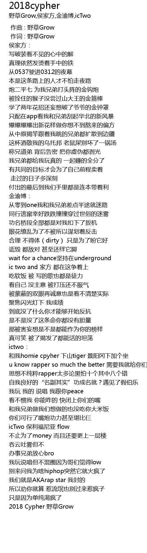 | [03:08.496] | 2018 Cypher yě cǎo Grow |