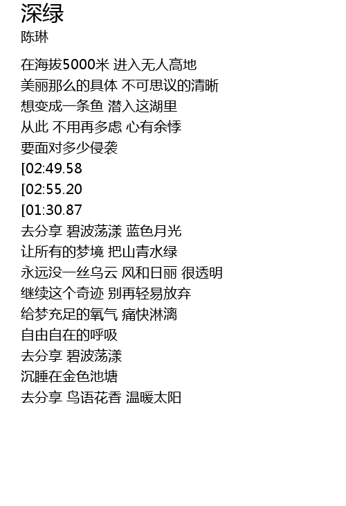 | [03:17.78][02:55.20][01:25.36] | 飞往 最绿的地方 |