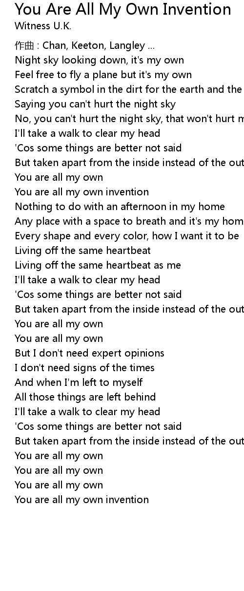 | Song | You Are All My Own Invention |