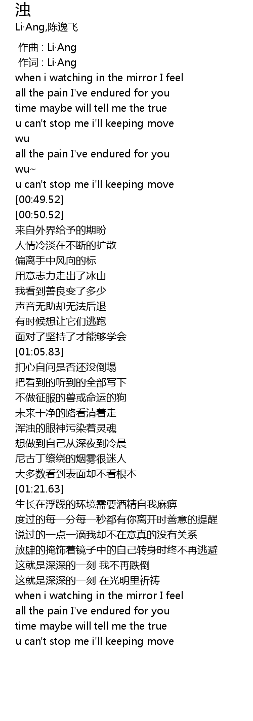 | [00:48.52] | u can' t stop me i' ll keeping move |