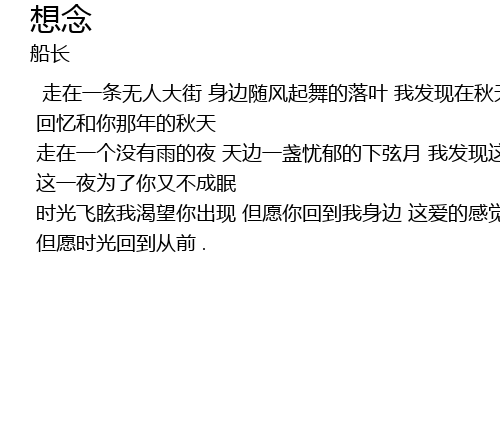 | 走在一条无人大街 身边随风起舞的落叶 我发现在秋天 我总是特别思念 | |