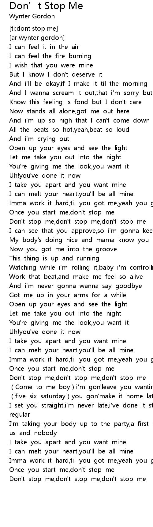 | [03:07.258] | Don' t stop me, don' t stop me, don' t stop me |