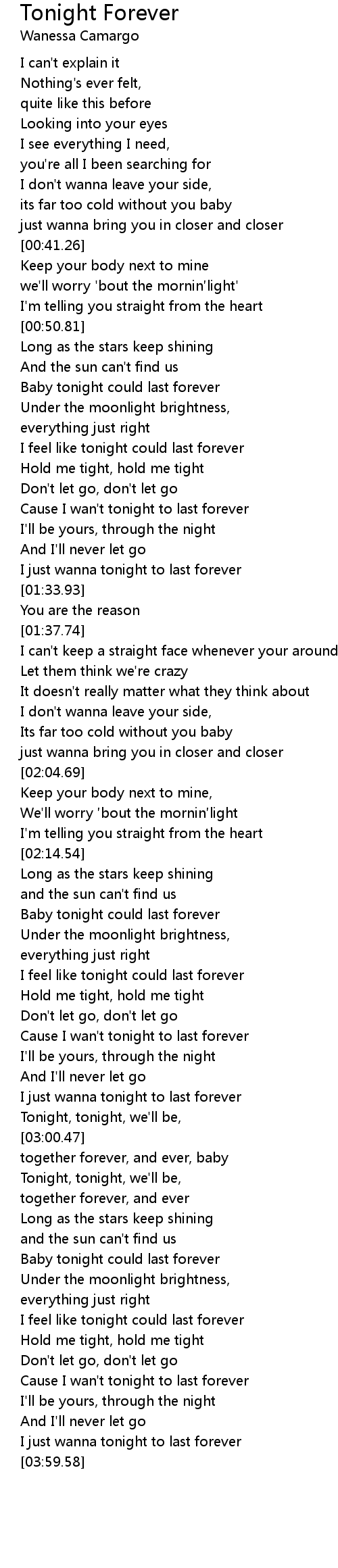 | [02:41.24] | Cause I wan' t tonight to last forever |