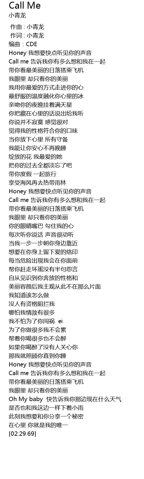 | [00:23.32] | Call me 告诉我你有多么想和我在一起 |