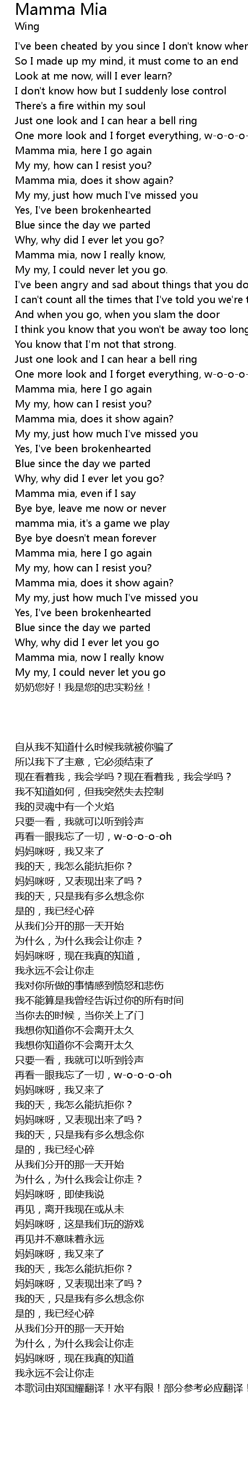 | [03:23.71] | Mamma mia, now I really know |