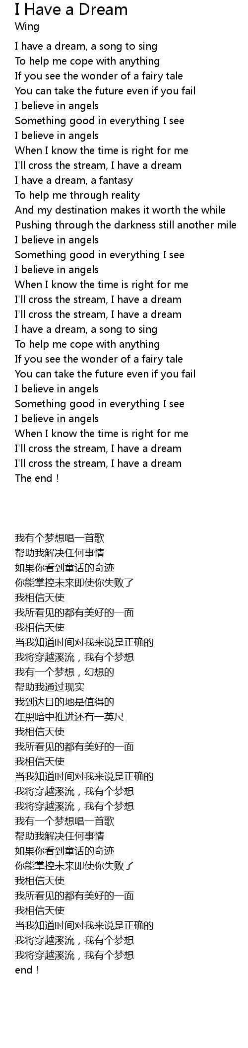 | [00:14.04] | I have a dream, a song to sing |