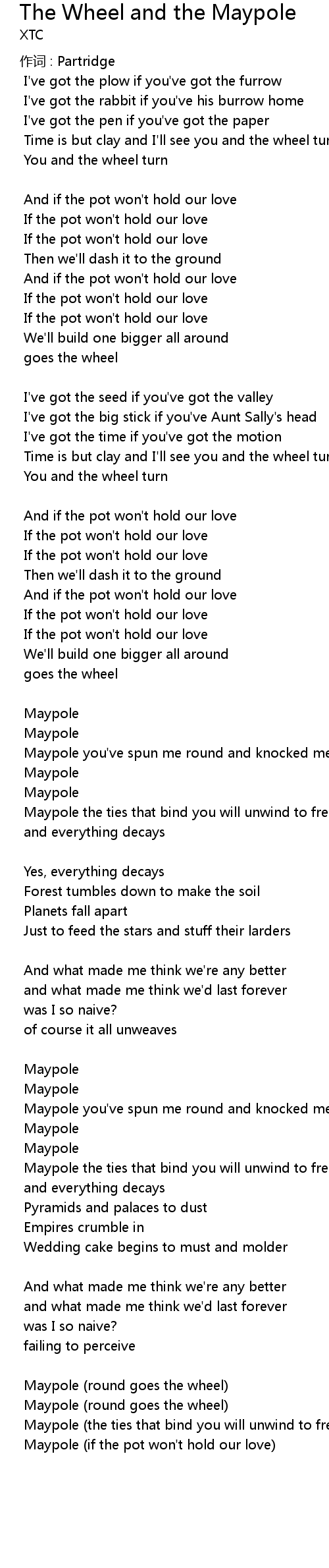 | Song | The Wheel and the Maypole |