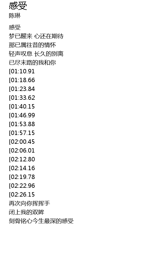 | [03:49.44][01:40.15] | 是你曾给我太多美丽的感受 |