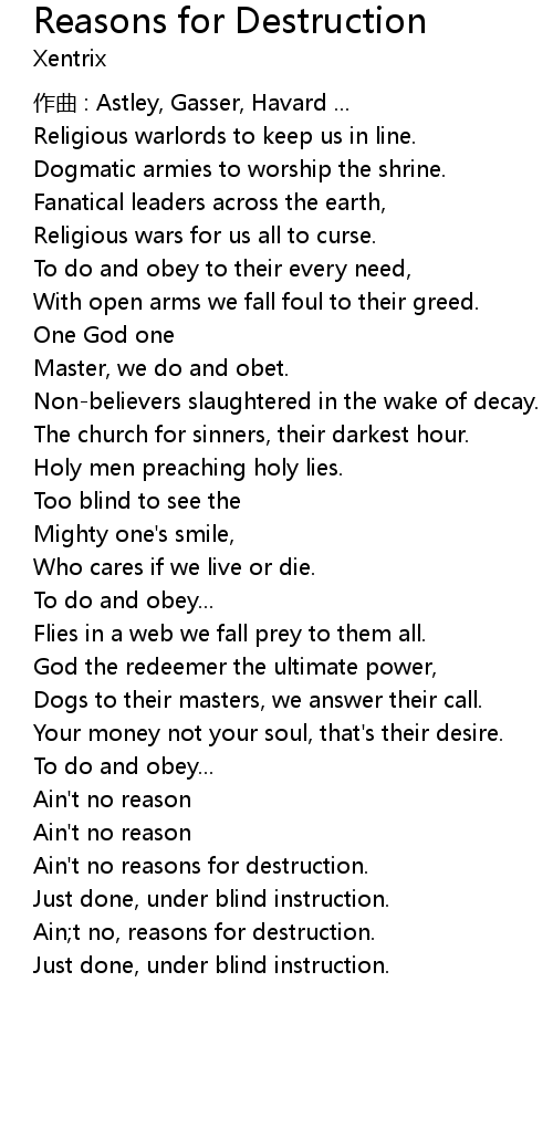 | Song | Reasons for Destruction |