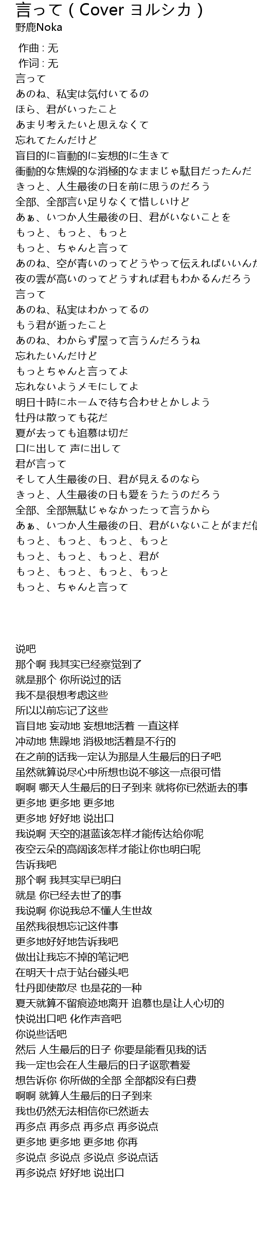 | [01:06.050] | 全部、全部言い足りなくて惜しいけど |