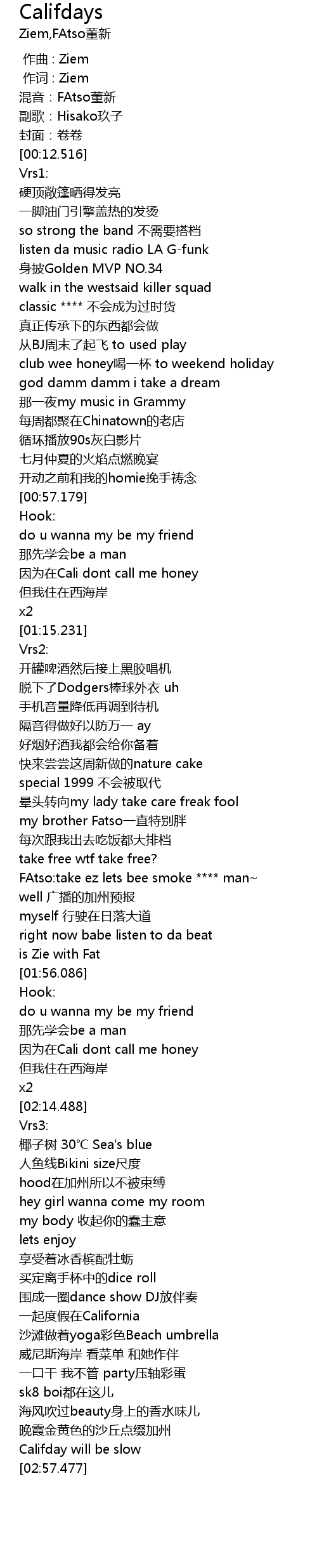 | [02:01.645] | 因为在Cali dont call me honey |