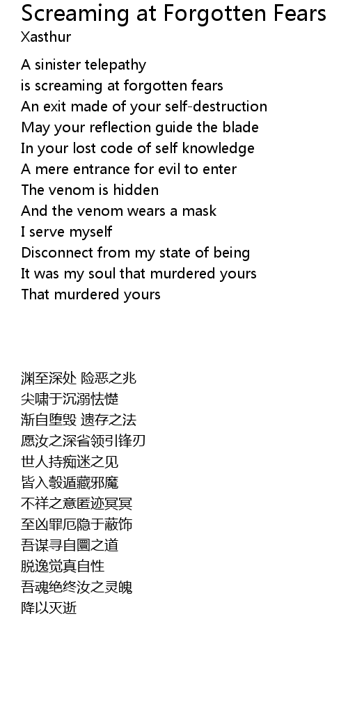 | [02:35.000] | is screaming at forgotten fears |