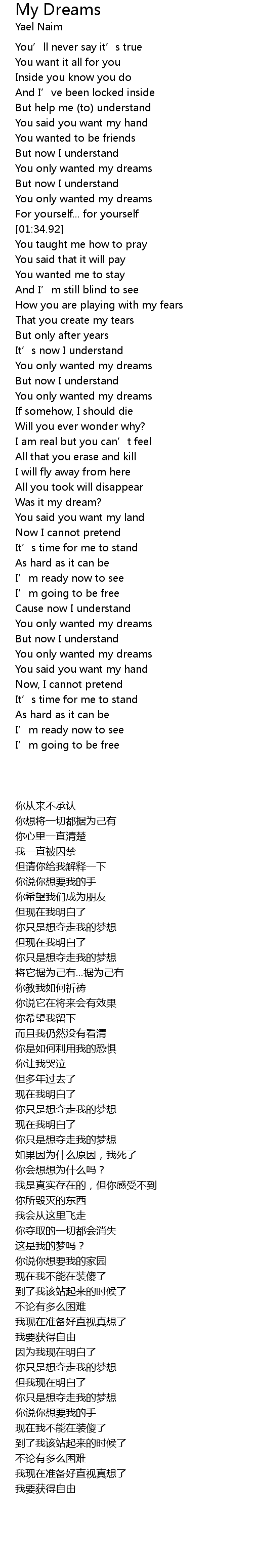 | [03:30.44] | You only wanted my dreams |