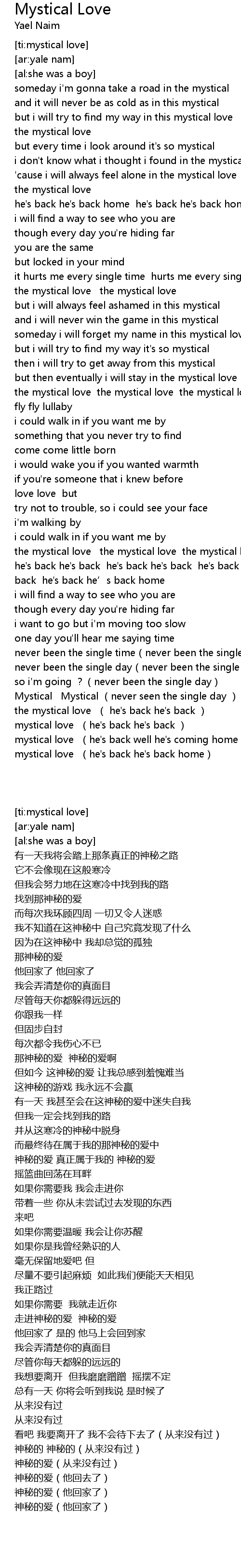| [03:08.79] | the mystical love the mystical love the mystical love |