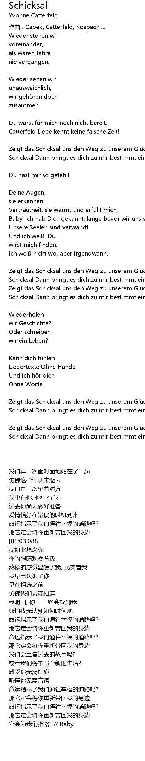 | Song | Schicksal |