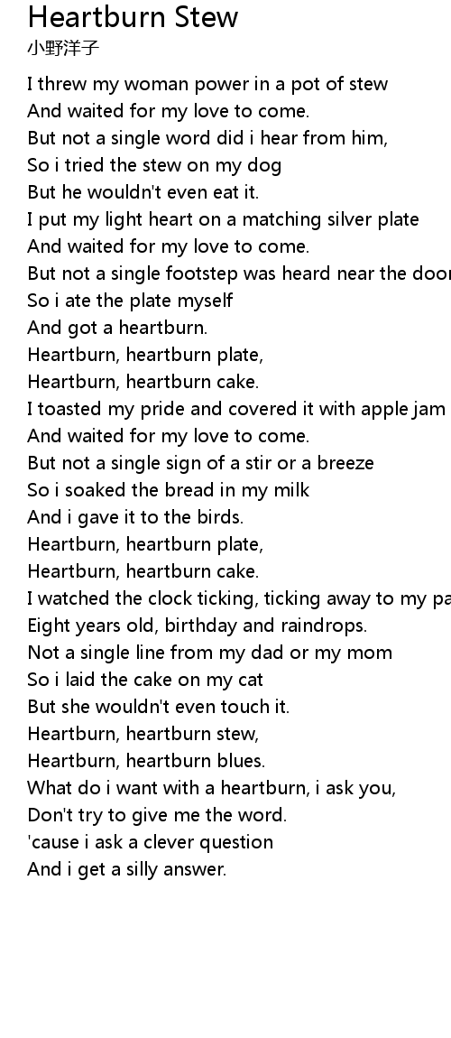 | Heartburn, heartburn stew, | |