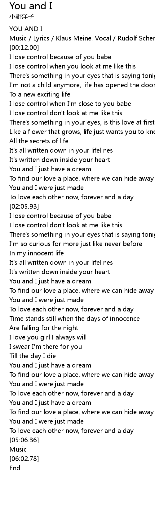 | [00:00.00] | YOU AND I |