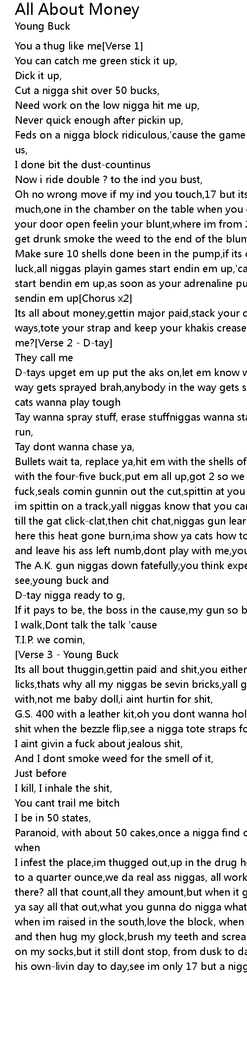 First go about money[Chorus x2][Verse 3 - Young Buck] |