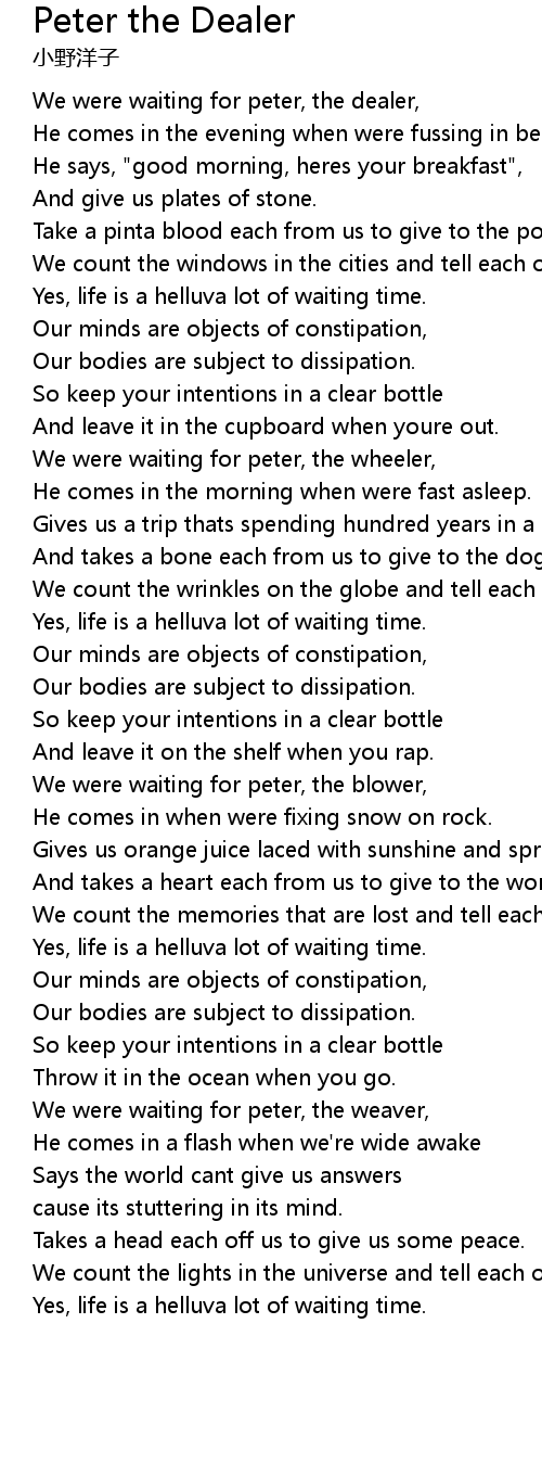 We were waiting for peter, the weaver, |