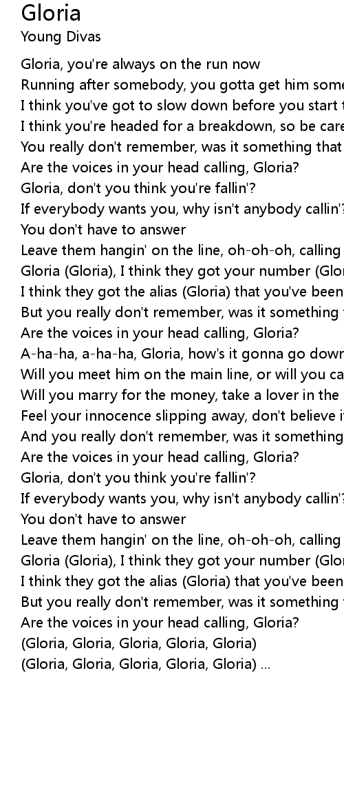 Leave them hangin' on the line, oh-oh-oh, calling Gloria |