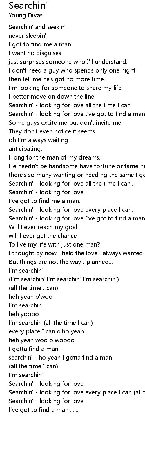 Searchin' - looking for love I've got to find a man.. |