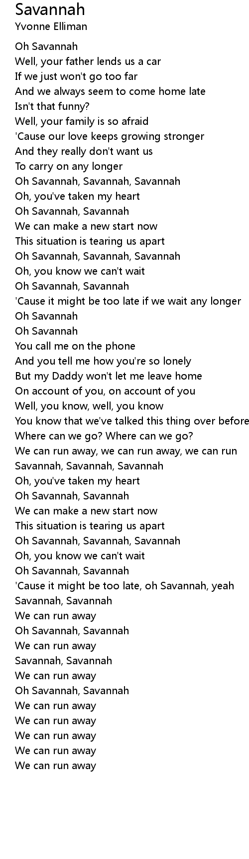 Oh Savannah, Savannah, Savannah |
