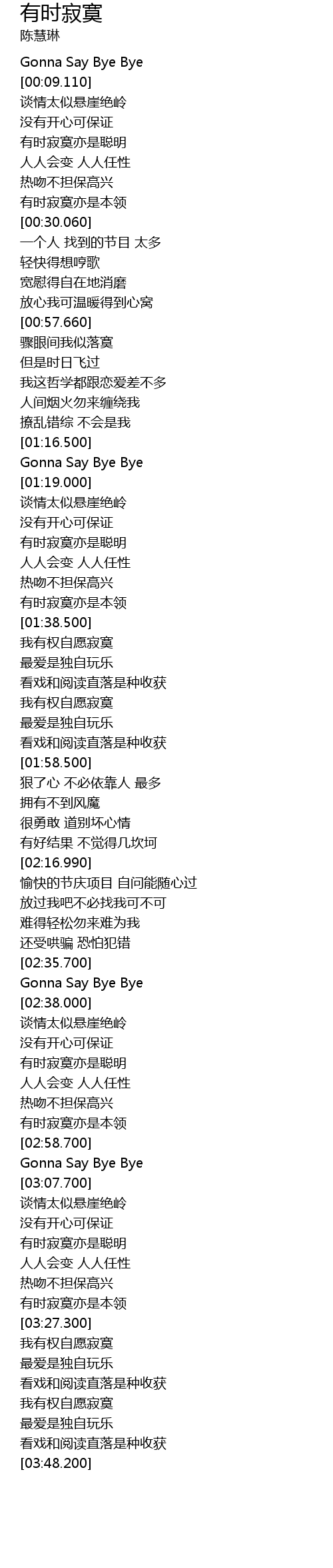 | [03:38.020] | wǒ yǒu quán zì yuàn jì mò |