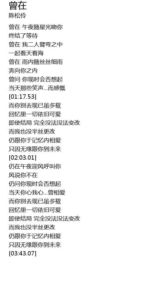 | [03:33.34] | 只因无缘跟你到未来 |