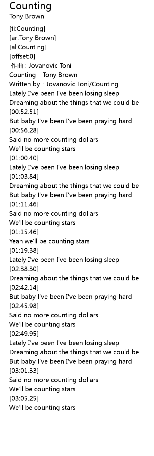 | [00:22.99] | Written by:Jovanovic Toni/Counting |