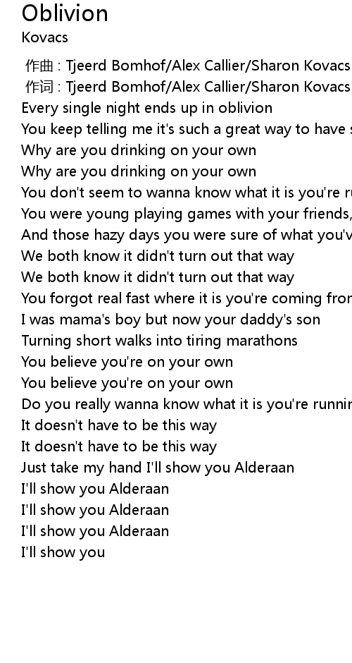 | [00:24.38] | Every single night ends up in oblivion |