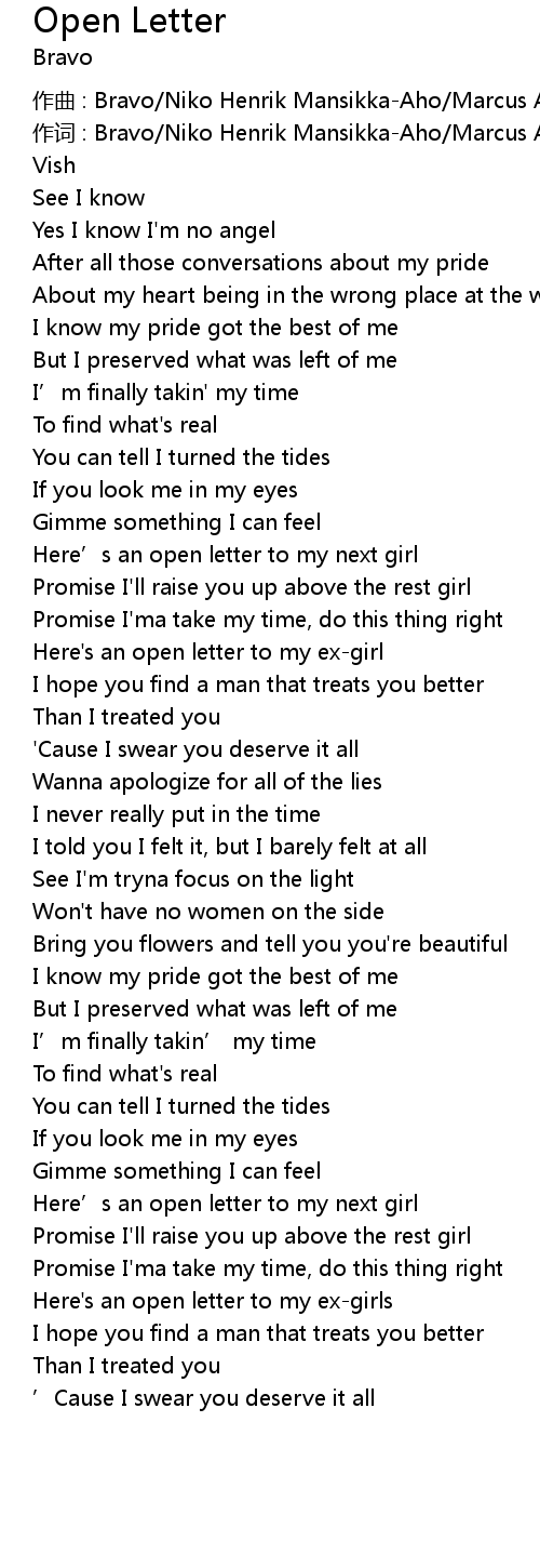 Open Letter Lyrics