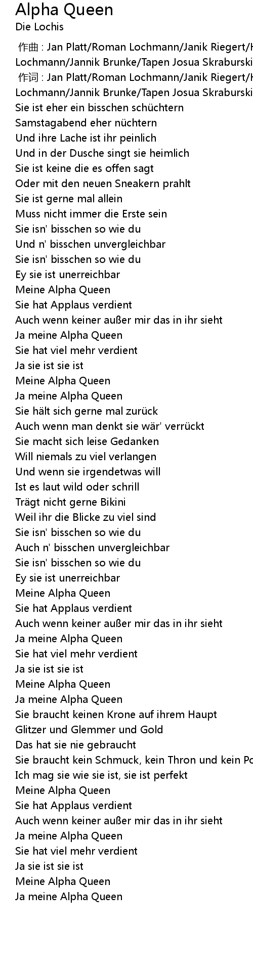 | [01:43.538] | Auch wenn keiner außer mir das in ihr sieht |