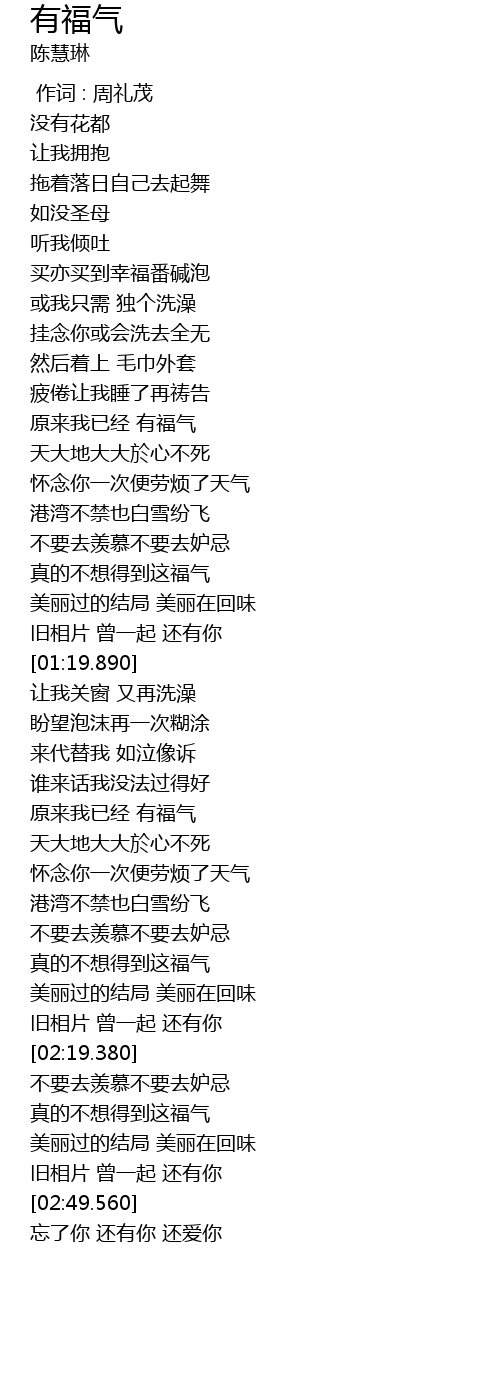 | [01:46.520] | 原来我已经 有福气 |