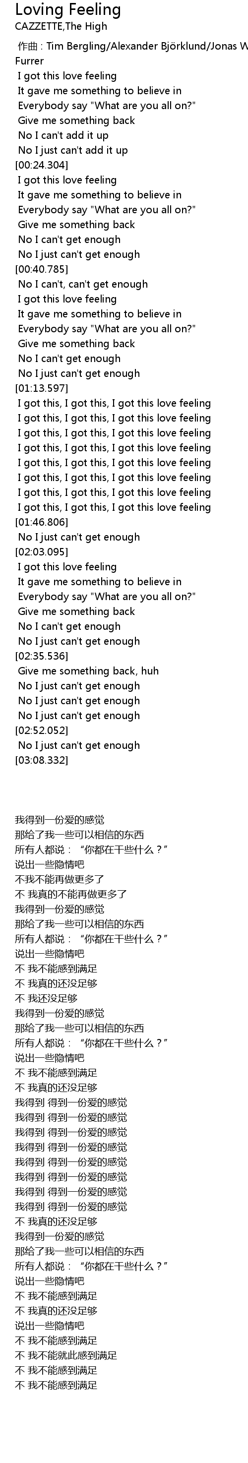 | [03:06.561] | No I just can' t get enough |