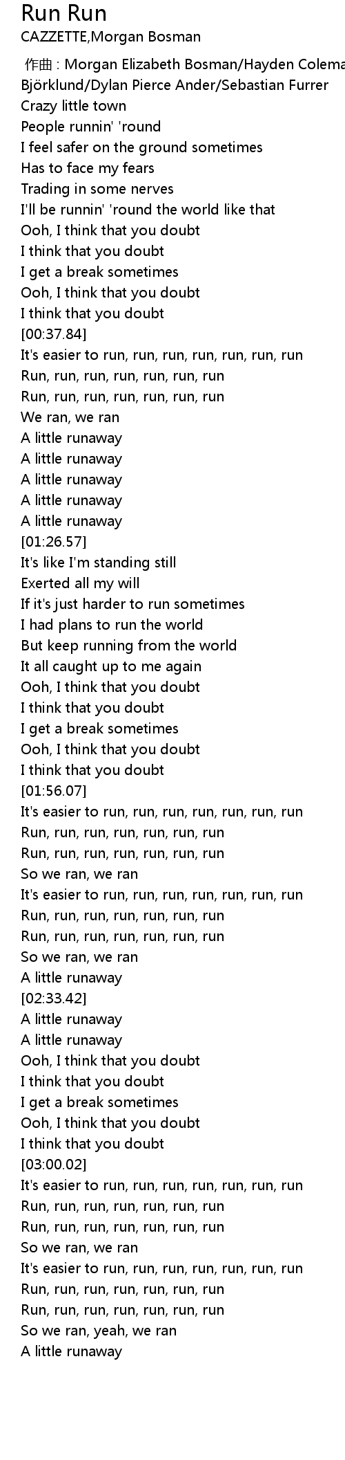| [03:24.61] | Run, run, run, run, run, run, run |