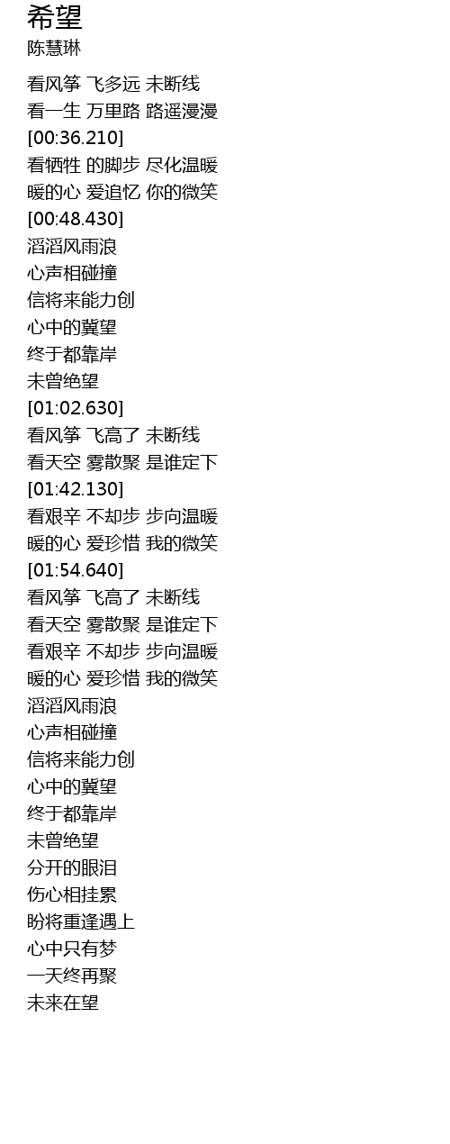 | [00:25.190] | 看风筝 飞多远 未断线 |