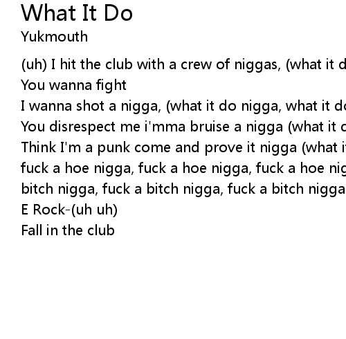 | (uh) I hit the club with a crew of niggas, (what it do nigga, what it do nigga) | |