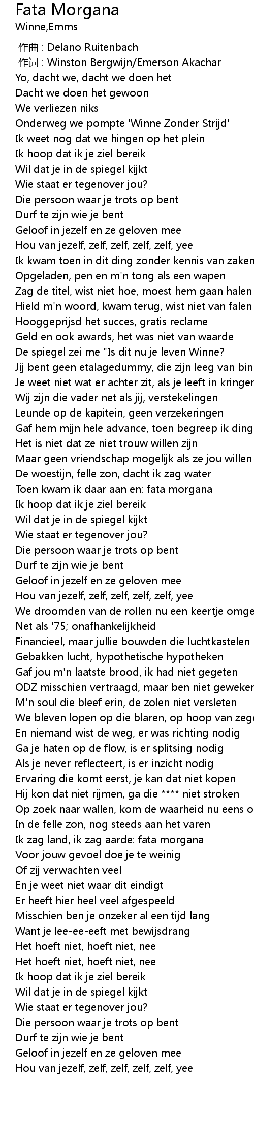 | [00:38.76] | Hou van jezelf, zelf, zelf, zelf, zelf, yee |