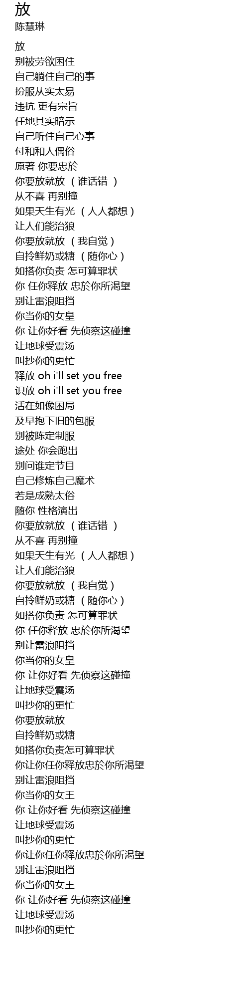 | [01:40.73] | 你要放就放 (谁话错 ) |
