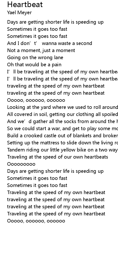 | I' ll be traveling at the speed of my own heartbeat | |