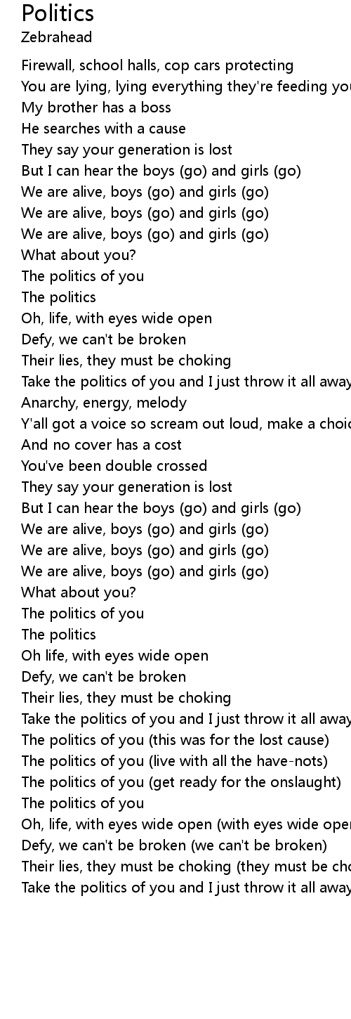 Take the politics of you and I just throw it all away |