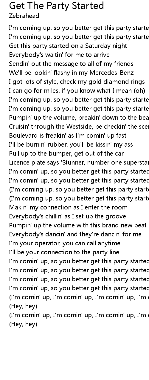I'm coming up, so you better get this party started |