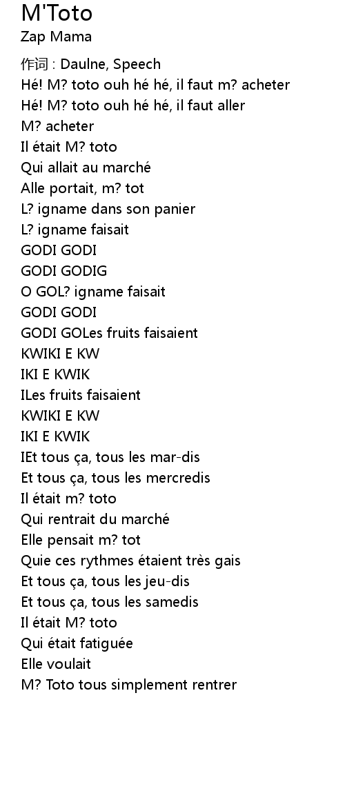 | Hé! M? toto ouh hé hé, il faut aller | |