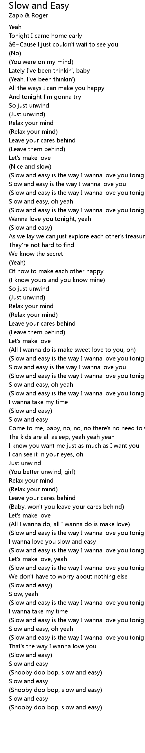 | [01:13.720] | Slow and easy is the way I wanna love you |