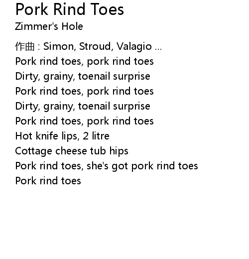 | Song | Pork Rind Toes |