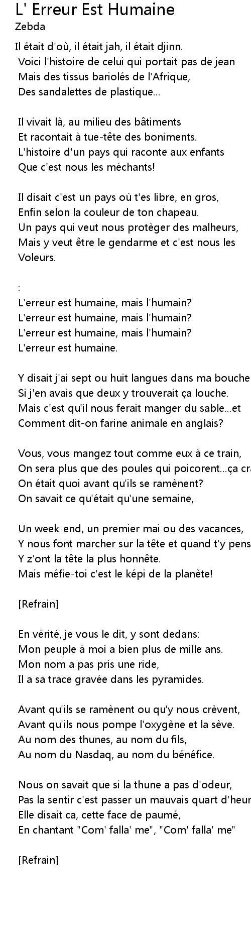 | Song | L' Erreur Est Humaine |