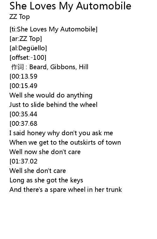 | [ti:She Loves My Automobile] | |