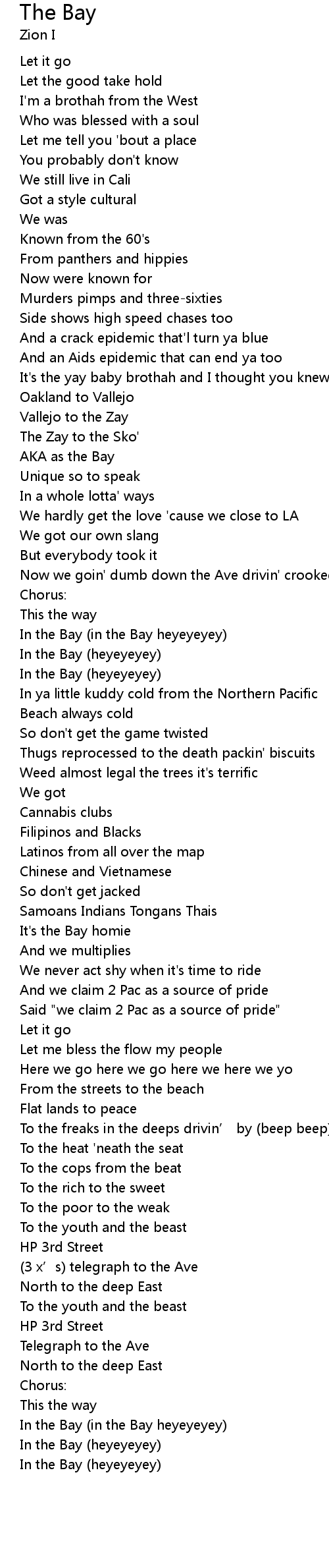 | In the Bay in the Bay heyeyeyey | |