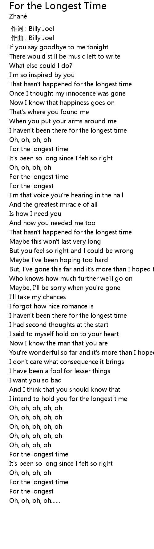 | Song | For the Longest Time |